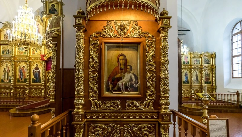 Отец Михаил показывает нам несколько афонских икон, сохранившихся сквозь десятилетия. Это Иверская икона Божией Матери, икона Пресвятой Богородицы «Всех скорбящих Радость», Козельщанская икона Божией Матери. Она почитаема в православной церкви как чудотворная, и в этом храме есть свои случаи чудесных исцелений благодаря искренней и истовой молитве. Уберегли все эти святыни корочанские верующие.