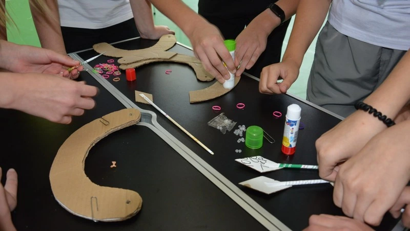 На заключительном этапе организаторы предложили школьникам с помощью бумаги, картона, клея и резинки изготовить лук и стрелы.