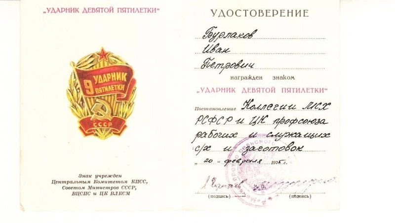 У папы было много наград, но больше всех он дорожил орденом Красной Звезды. В одном из сражений, выполняя боевую задачу, получил тяжёлое ранение в ногу. После госпитализации снова вернулся в строй. Ещё мне запомнился рассказ папы о встрече с его отцом Петром. Это было на железнодорожной станции в Острогожске Воронежской области, где формировали эшелоны с красноармейцами. Все сидели на скамейках, прислонившись спинами друг к другу. Услышав приказ «По эшелонам!», отец развернулся и увидел своего отца, которого призвали на фронт в первые дни войны. Они обнялись и снова расстались. Это была их последняя встреча. Наш дед Пётр, к великому сожалению, погиб в бою под Воронежем.