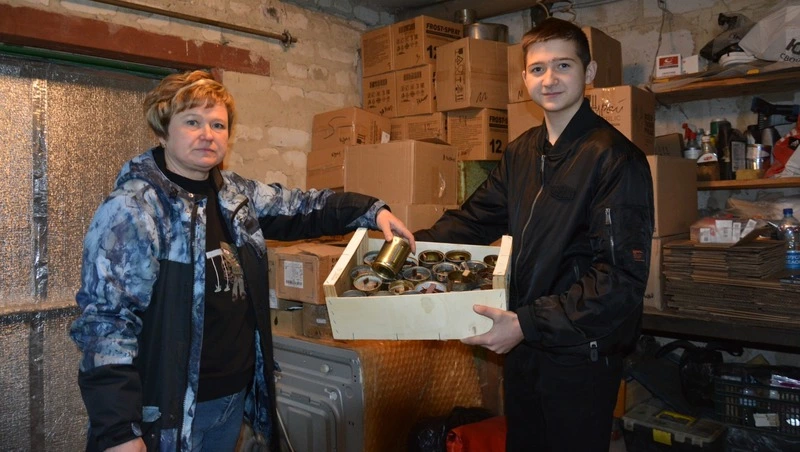 Для сбора гуманитарной помощи Елена Съедина приспособила собственный гараж. Супруг с сыном соорудили стеллажи. У каждой коробки своё место, и она обязательно подписана.