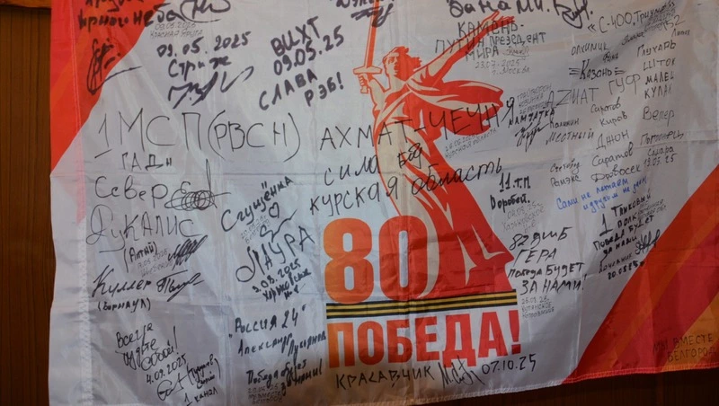 Она достала из шкафа флаги с автографами бойцов, начала рассказывать об их судьбах. Причём всех, кто оставил на ткани свою подпись или пожелание, она хорошо знает по имени, помнит позывной, а в записной книжке телефонного справочника хранятся их номера телефонов: Серёжа, Петя, Коля, Миша…