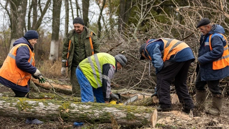 Вырубкой сухостоя в посадках на заготовку дров для жителей занимается учреждение «Уют». Ещё в прошлом году специальная комиссия определила деревья, которые нужно вырубить, и теперь сотрудники организации делают два важных дела одновременно: очищают и прореживают посадки и запасают дрова.