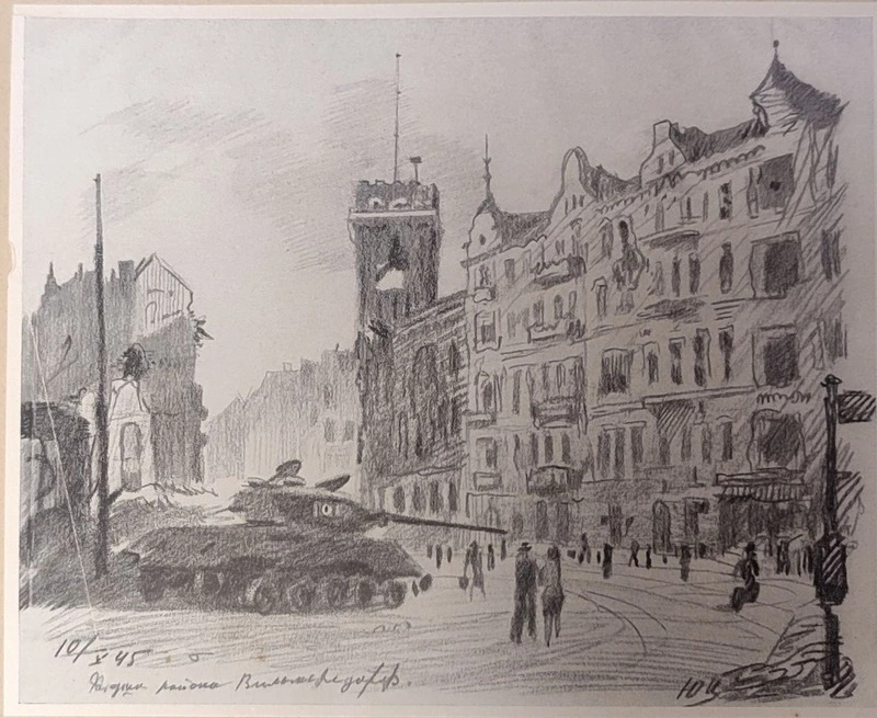 Музейный предмет, о котором идёт речь, представляет собой уникальный сборник репродукций графических работ, выполненных на мелованном картоне и бумаге формата А4. Экспонат входит в разряд хорошо сохранившихся редких экземпляров, имеющих высокую степень исторической достоверности и художественной ценности. Альбом издан в виде книги в плотной картонной обложке коричневого цвета, состоит из пяти частей. На второй странице присутствует надпись: «Товарищу Мирошниченко воину Н-ской стрелковой Островской Краснознамённой ордена Суворова II степени дивизии в память о незабываемых днях великого наступления на Берлин».