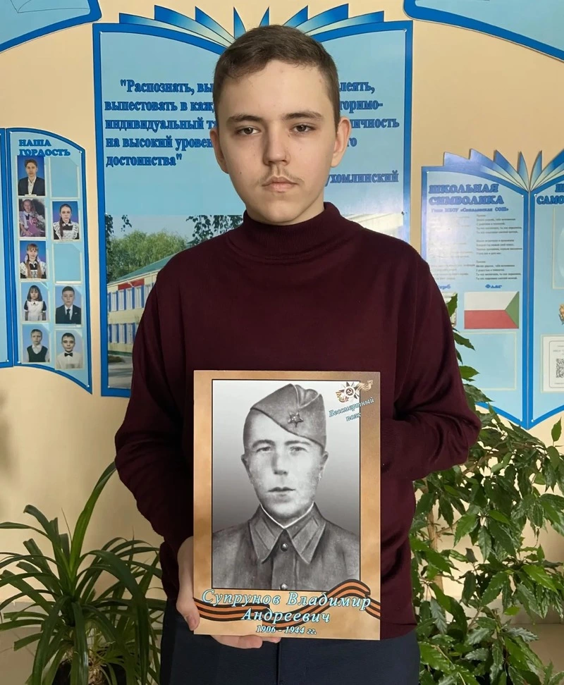 А ещё, дедушка, я узнал, что в городе Кубинка Московской области есть музейный комплекс «Дорога памяти», длина которого 1 418 метров, то есть равна количеству дней, на протяжении которых шла война. Мне удалось зайти на его сайт. И, представляешь, я разыскал там твой портрет и краткую информацию. Ты не думай, что будешь забыт. Мы, твои пять внуков, семь правнуков и пять праправнуков, будем помнить о тебе и хранить твои портреты вместе со стихотворением, написанным бабушкой.