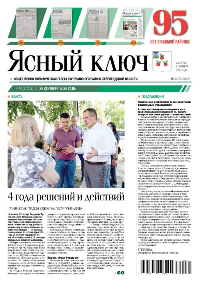 Газета «Ясный ключ» № 39 от 25 сентября 2025 года