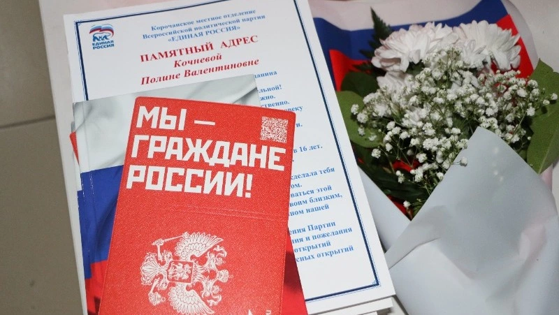 Вместе с паспортами юным гражданам вручили подарки: обложки с символикой «Движения Первых», памятные адреса местного отделения партии «Единая Россия», а также Конституцию РФ.