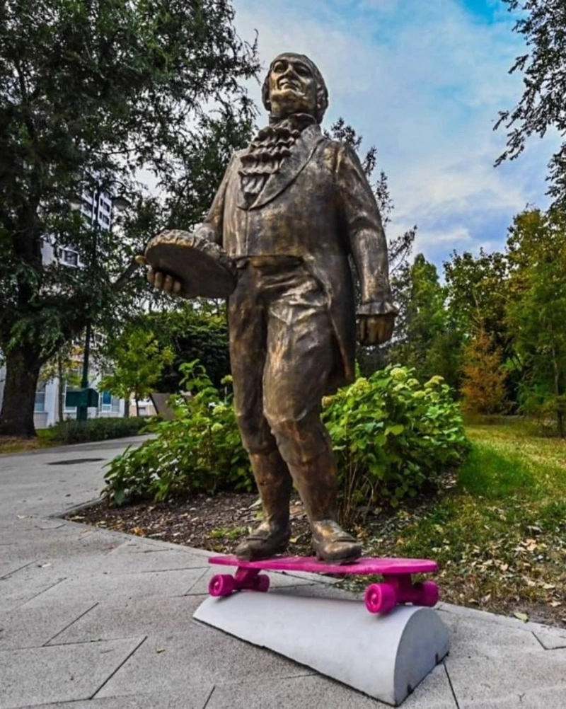 Исторические личности предстают в неожиданном облике: Иван Мичурин изображён на самокате как символ стремления к новым открытиям, а Михаил Щепкин — на скейте, что олицетворяет лёгкость и творческую свободу.