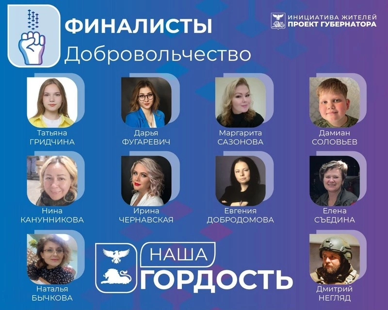 Определены финалисты регионального конкурса достижений жителей Белгородской области «Наша гордость» 2024–2025 годов. В десятку лучших в номинации «Добровольчество» вошла и наша землячка — Елена Съедина.