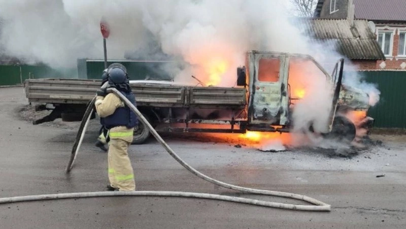 В посёлке Борисовка от удара одного из них по грузовому автомобилю ранен мужчина. Бригада скорой доставляет пострадавшего с минно-взрывной травмой и множественными осколочными ранениями ног в горбольницу № 2 г. Белгорода. Автомобиль уничтожен огнём.