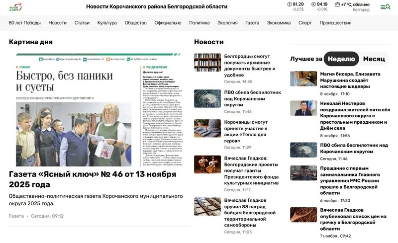 Текстовая реклама в сетевом издании «Ясный ключ» Корочанского муниципального округа