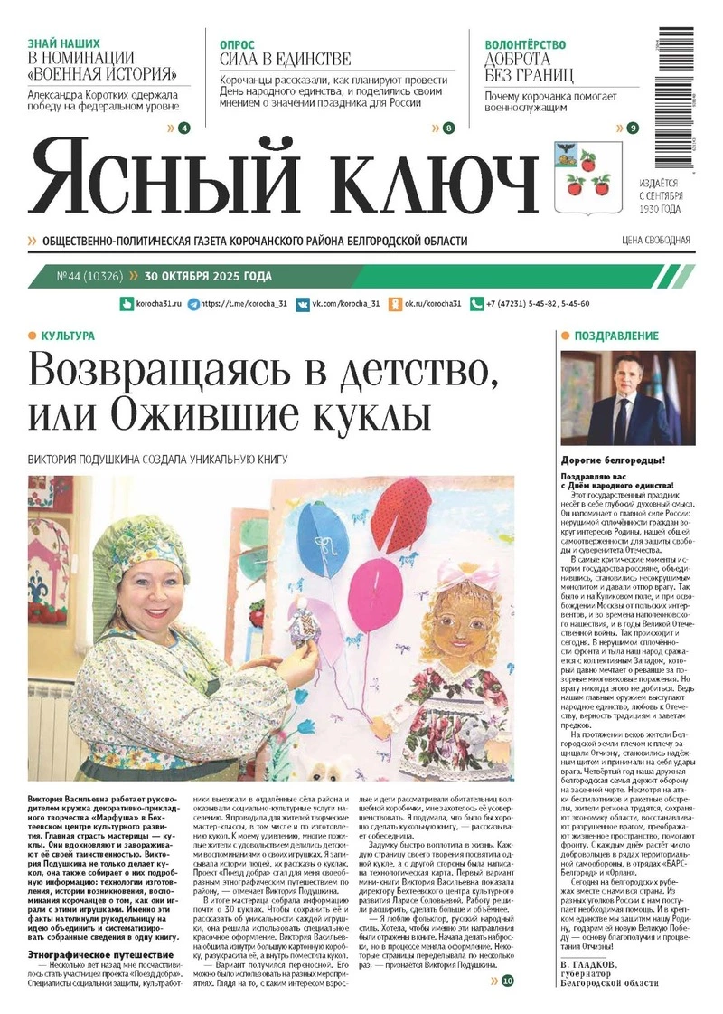 Адрес редакции газеты «Ясный ключ»: г. Короча, ул. Ленина, 59.
